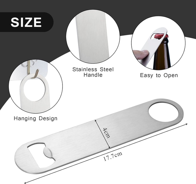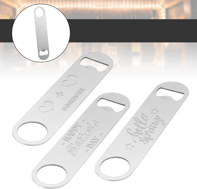 Stor barblade, precis som dem kapsylöppnare de använder på barer. Med en längd på 17,7 cm kan du välja att personanpassa den genom att lägga till gravyr.